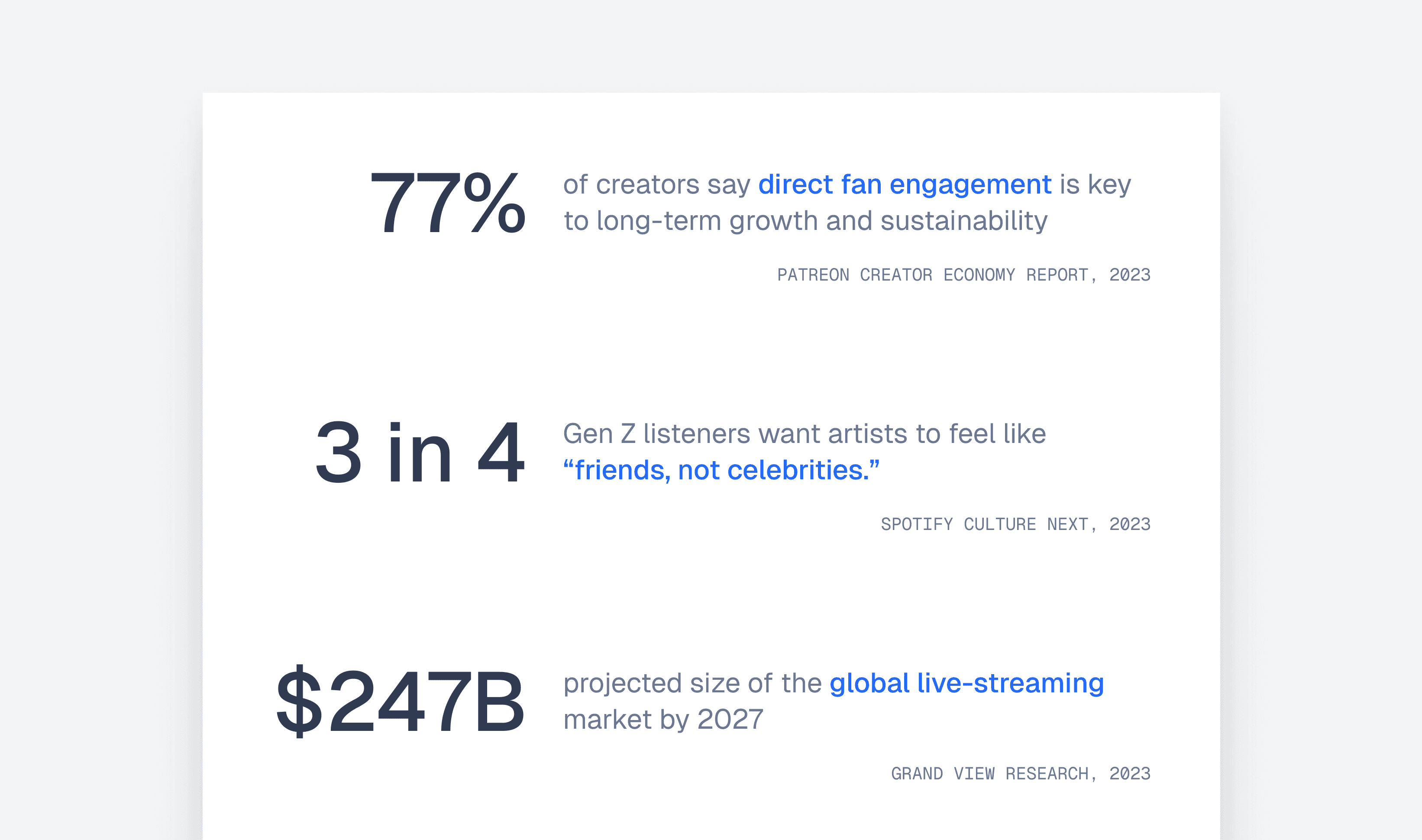 Designing the first-ever livestream experience for music, podcast, & book creators—one that strengthens connections with global audiences and unlocks opportunities for monetization—all under 7 hours.