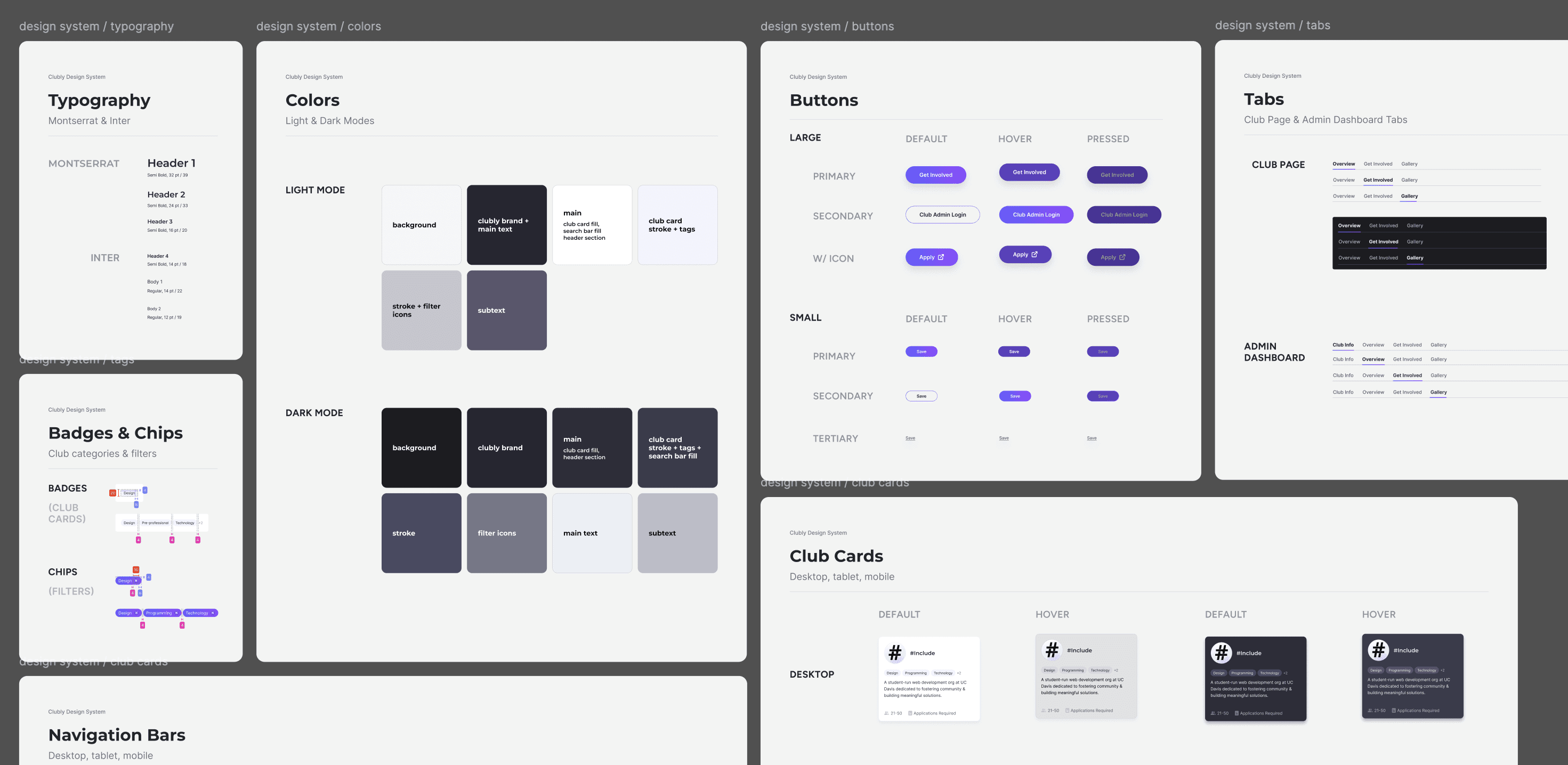 To assist accurate design implementation, I created Clubly's first organized design system library, ensuring all components followed an 8pt grid system and WCAG AA standards (at minimum).