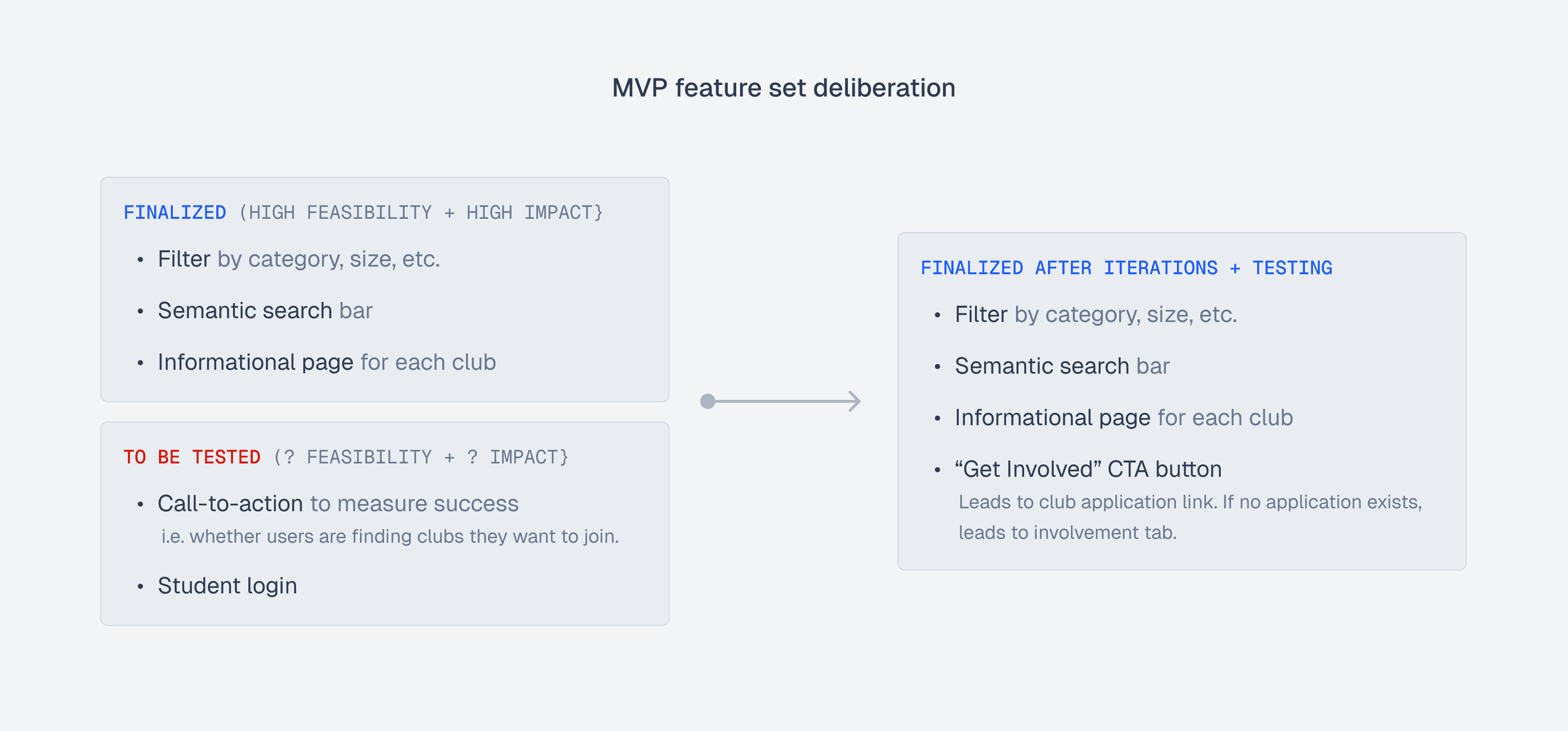 In other words… helping users learn more about the clubs that match their interests in less time, while prioritizing impactful and feasible solutions.
