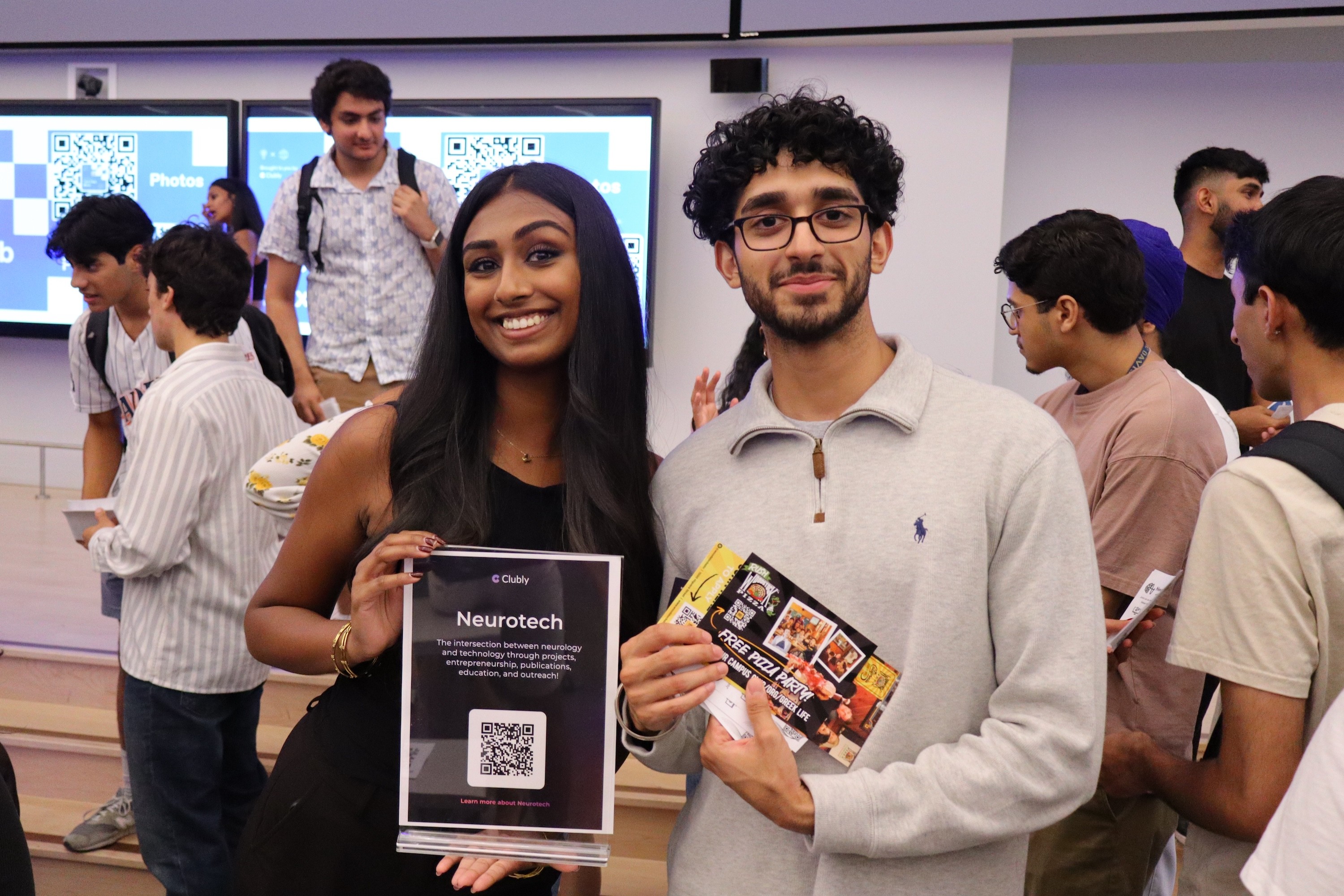 Clubs showing off their Clubly QR code at UC Davis's 2nd annual Tech Club Mixer