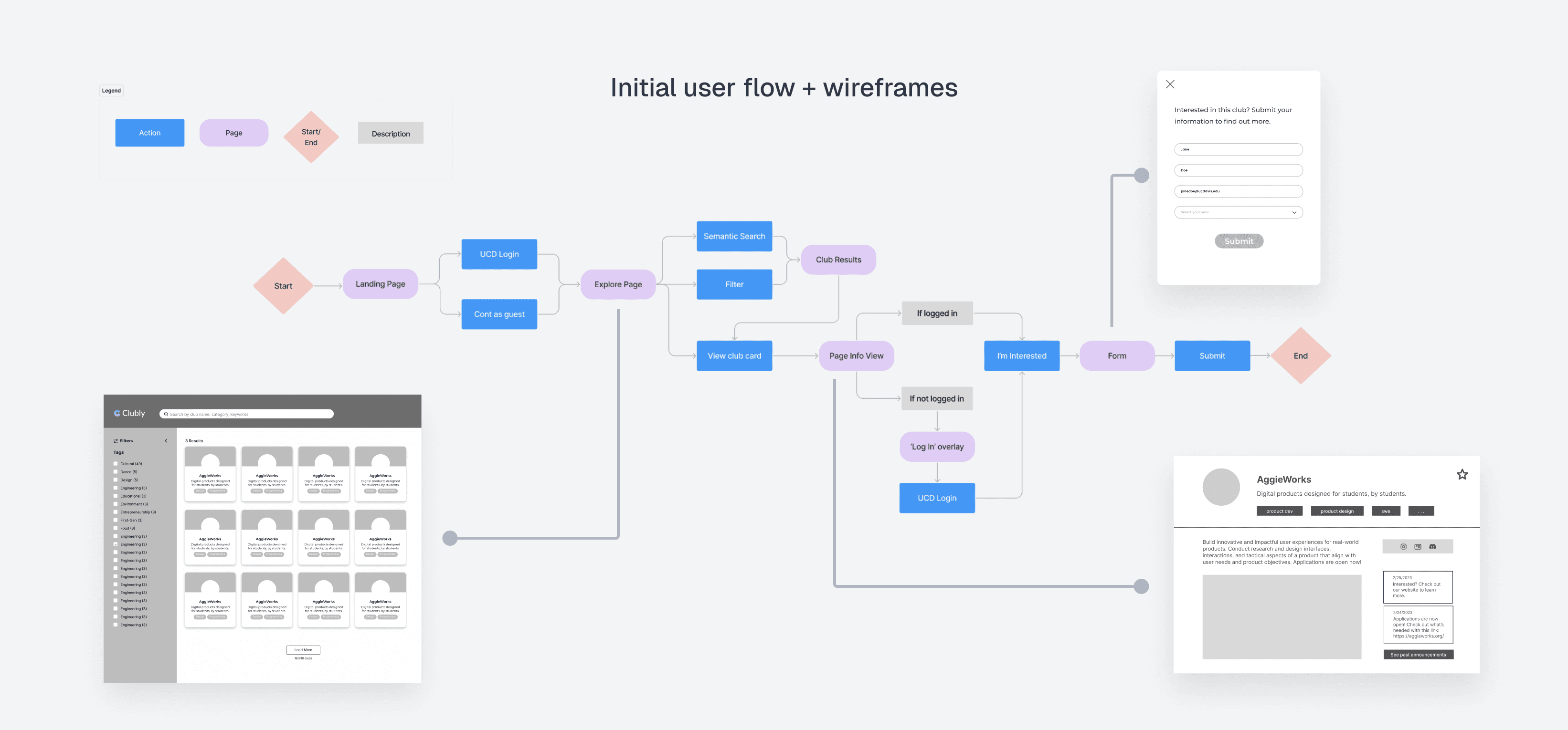 Clubly, an initiative of AggieWorks, was designed as a club discovery platform to tackle this issue. However, Clubly’s planned features were not feasible nor user-friendly for an upcoming MVP launch—big redesigns were needed.